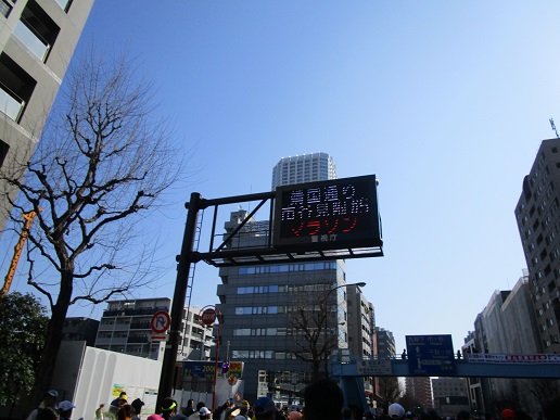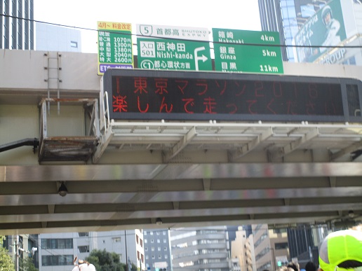 中には「東京マラソン2016、楽しんで走ってください」なんていう応援メッセージの電光掲示板も…