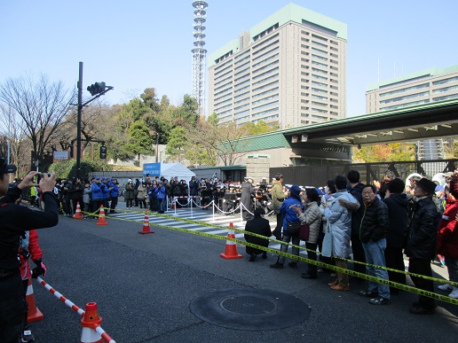 市ヶ谷の防衛省の前では、自衛隊のブラスバンド(たぶん)の人たちが演奏していました。