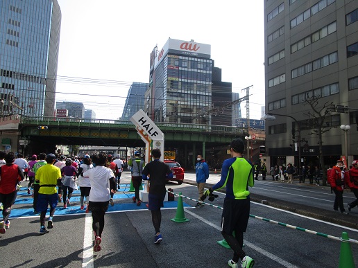 この10~20㎞の、日比谷通りから第一京浜を走り、品川で折り返す区間は、ビル風が強いし、日陰で寒いし、コースは単調でメンタルがきついしで、さりげに最初の難関だったりします。