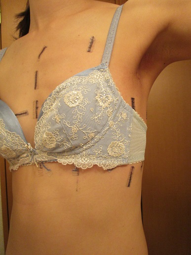 ・「体を締め付けたり擦れたりする下着を避けてください。ワイヤー入りブラジャー、レースの多い下着などは避けてください」