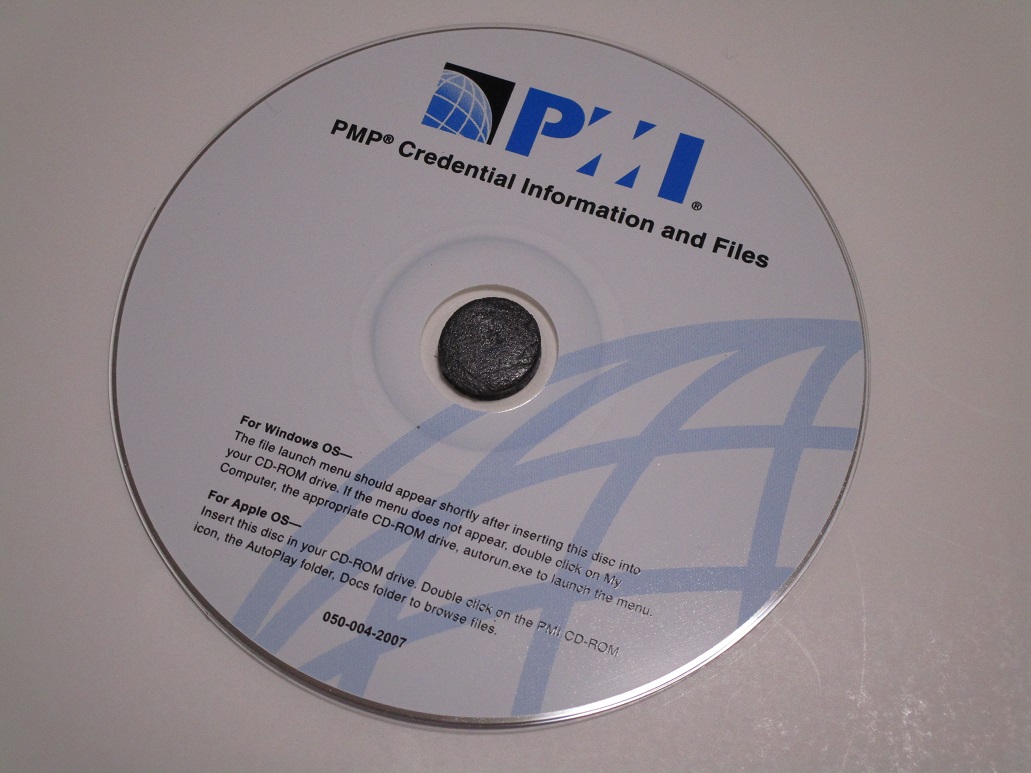 ところで今回の記事に掲載する写真を撮るため、今までのPMP更新時の資格証をあさっていたところ、初回に送付されてきたピンバッジ(冒頭の写真参照)と、謎のCDを発見しました。