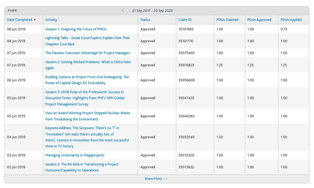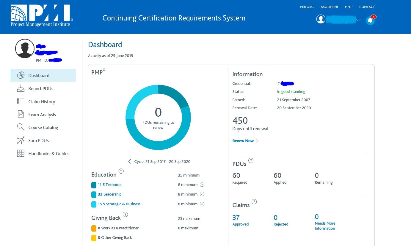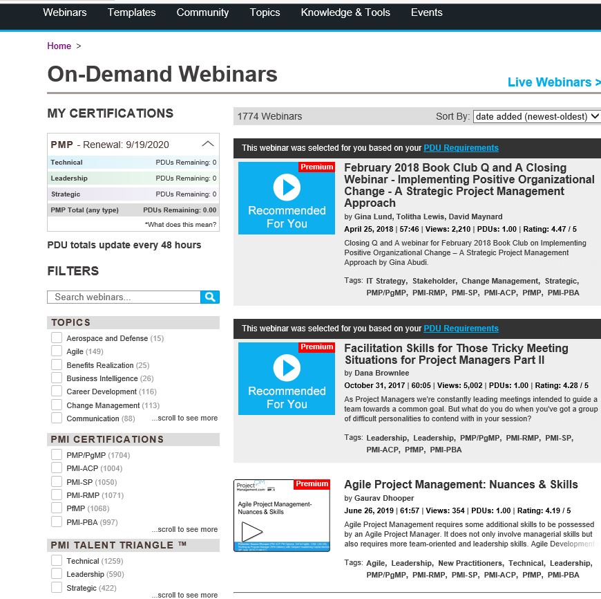 かくいう私もその一人で、大体PMI認定の教育コースを60時間分受講して3年ごとに60PDUかき集めてしのいでいます。