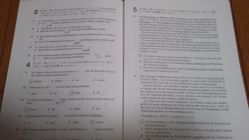 ↓いろいろ書きこんでみた問題用紙。ドイツ語が分かる人は、書き込みを見て、私の文法力のなさを笑ってやりましょう。